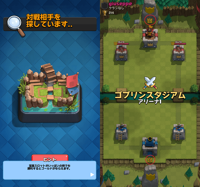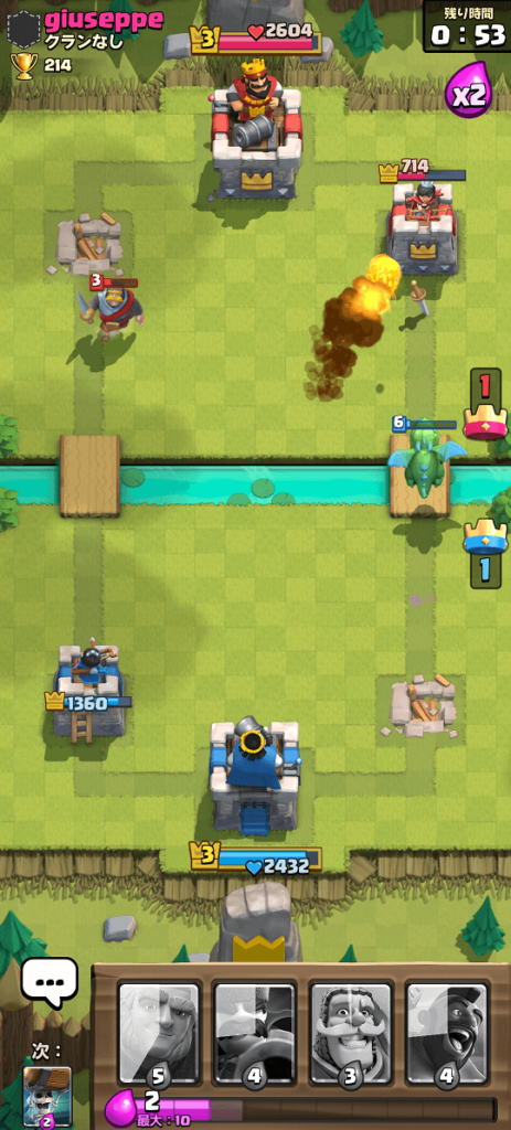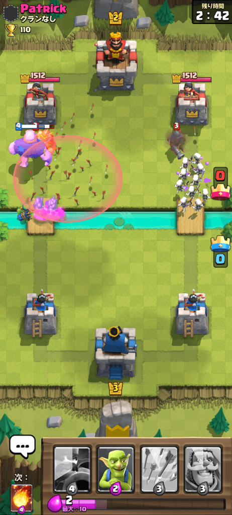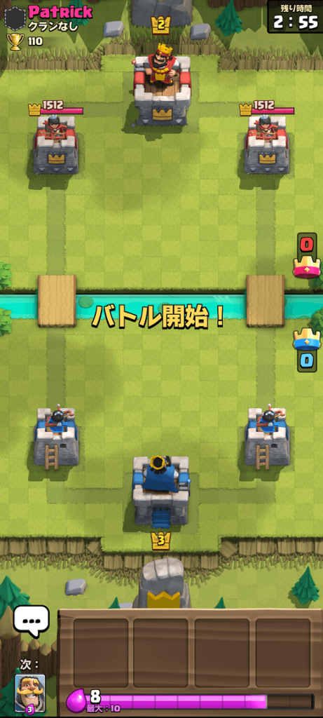 クラッシュロワイヤルは3分のあいだ自城を守り敵のキングタワーを攻め落としたプレイヤーが勝利するとても分かりやすいルールです。