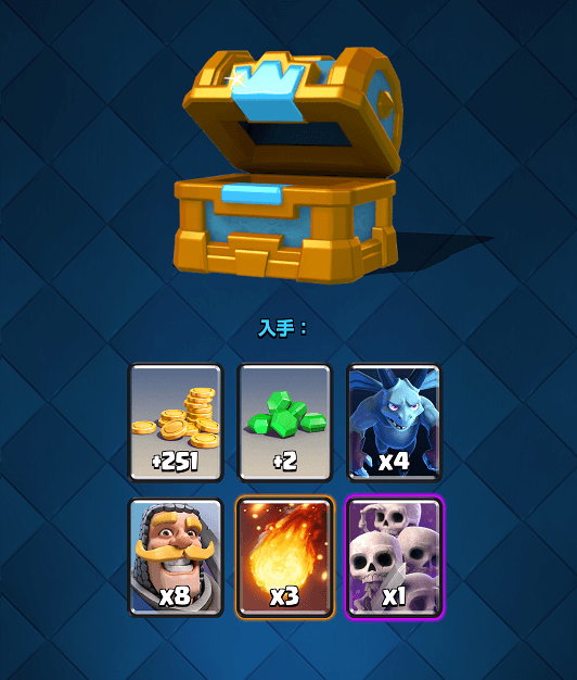 クラッシュ・ロワイヤルでは豊富なゲームモードのプレイで宝箱が手に入り、中にはエメラルドやカード、ゴールドが入っています。