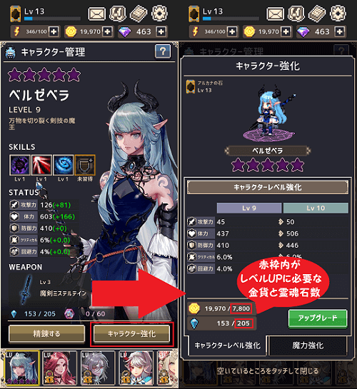 宝箱と霊魂石、金貨を使ってレベルアップ