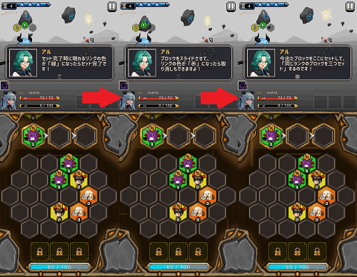 ヘキサゴンダンジョン:アルカナの石のメインクエストはステージとストーリーが同時進行。登場人物が操作方法やゲームの流れを教えストーリーの進行とともに操作方法をスムーズに覚えられます。