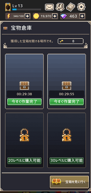 画像はレベル13。宝物倉庫のデッキは2つ稼働中