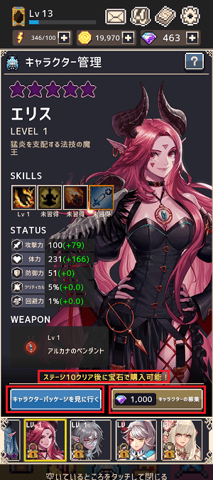fa-check-circle資金に余裕があればショップのキャラクターパッケージの購入(課金)がオススメ