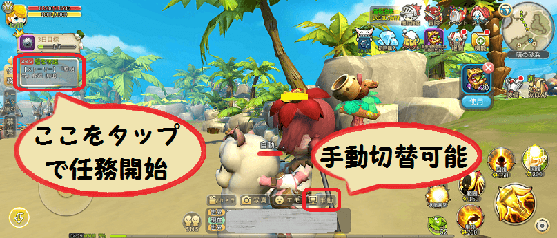 ルミアサガーちび萌え自由大冒険はメインクエストになると自動進行でプレイできます。