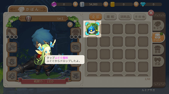 ルミアサガーちび萌え自由大冒険では冒険で集めた装備品を整理しないとすぐに鞄が圧迫されます。