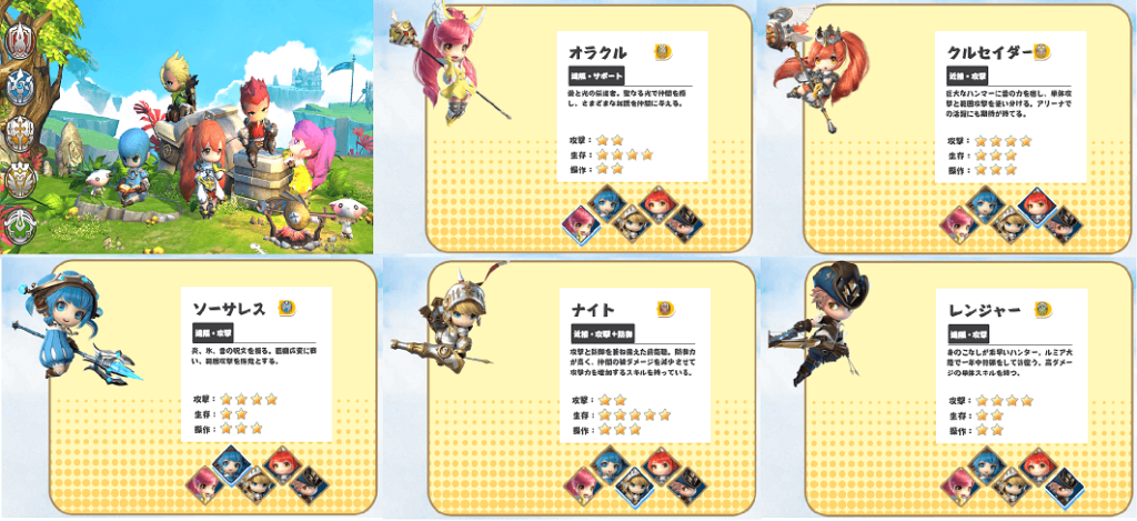 自然豊かなルミア大陸を自由に探索するルミアサガーちび萌え自由大冒険は5つの職業から1つ選んで冒険がスタートします。