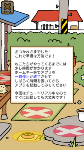 ダウンロード直後はチュートリアルに沿った操作でグッズとゴハンのセットまで簡単に進みます。