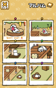 撮影した写真はねこ手帳のアルバムから確認でき、あなたがベストショットに選んだ写真が手帳に表示されます。