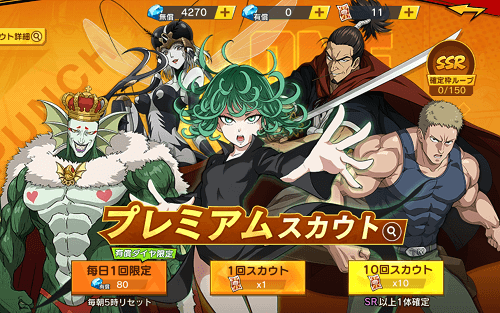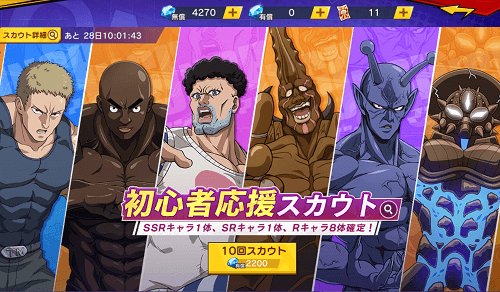 SSRキャラ1体、SRキャラ1体、Rキャラ8体確定