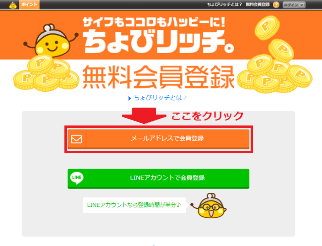 fa-chevron-circle-rightメールアドレスで会員登録をクリック