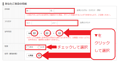 fa-chevron-circle-right生年月日、住所は▼をクリックして選択