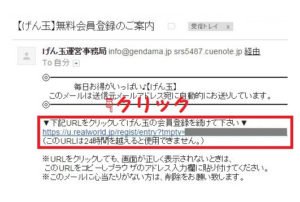 • 送信したアドレス宛に「【げん玉】無料会員登録のご案内」が届くので本文中のURLをクリック