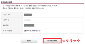 • 登録内容の確認画面で内容に間違いなければ無料会員登録するをクリック