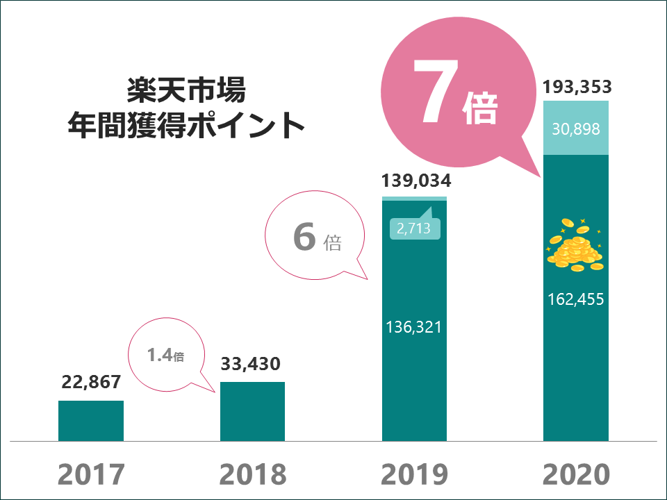 2020年に楽天市場で貯めた162,455ポイントのうち